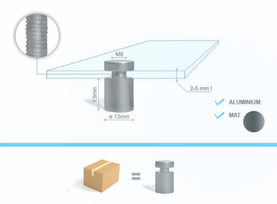 - nabízíme hliníkové distanční šrouby 13 x 13 mm (síla desky max. 5 mm) k upevnění desek o rozměru A3 a A4